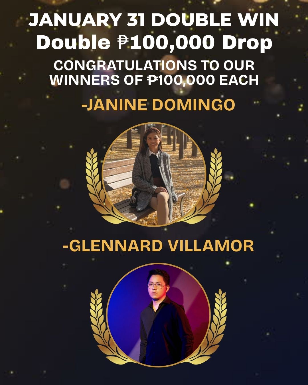 February double win ₱100,000 x2. *Live announcement of draw winner at 7:00PM